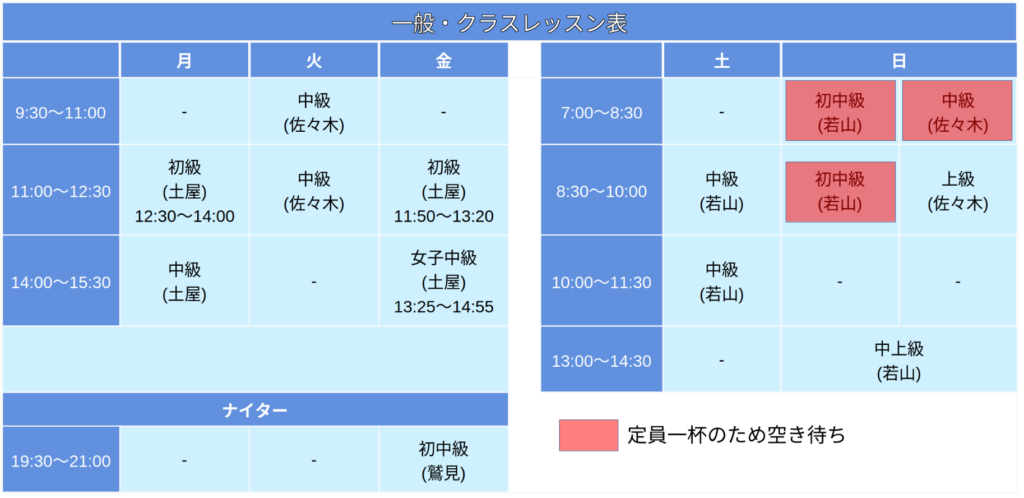 追加されたのはいずれも土屋コーチの初級クラスで、下記の時間枠となります。テニスに初めてチャレンジされる方には、こちらのクラスをお勧めします。月曜日:12:30〜14:00金曜日:11:50〜13:20